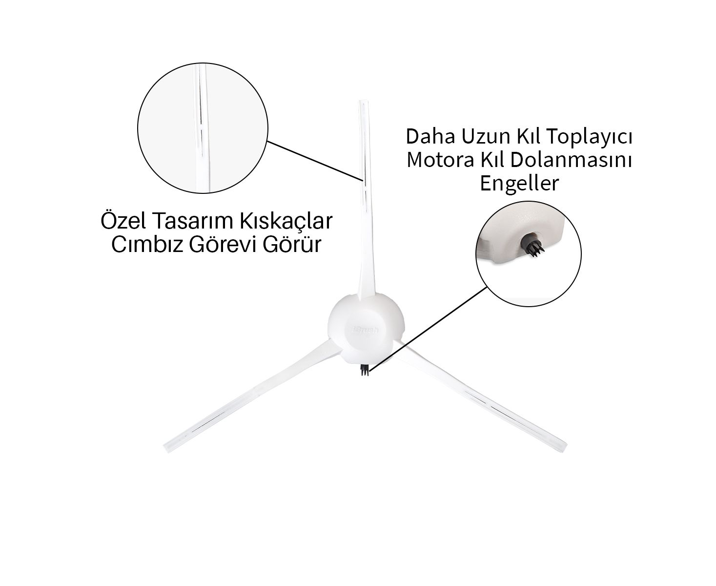 2 Adet Hepa Filtre, 2 Adet Yan Fırça, 2 Adet Paspas, 1 Adet Ana Fırça, 1 Adet Ana Fırça Kapağı, 1 Adet Ana Fırça Temizleme Tarağı
